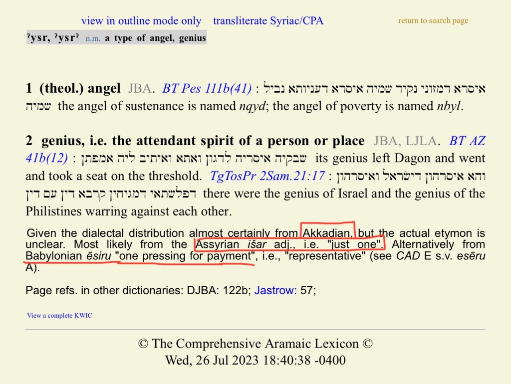 As beautiful as that second part of the journey of Jacob a.k.a Israel/IΕ‘ral/YΕ‘ral is let’s take a look at two possibilities of what his name change might actually mean according to etymology. Below are some screenshots from the CAD ( Chicago Assyrian Dictionary Vol. 7, I/J pg. 261)