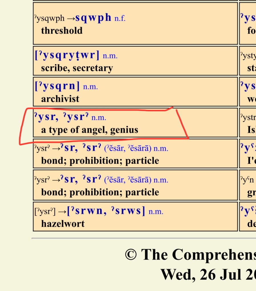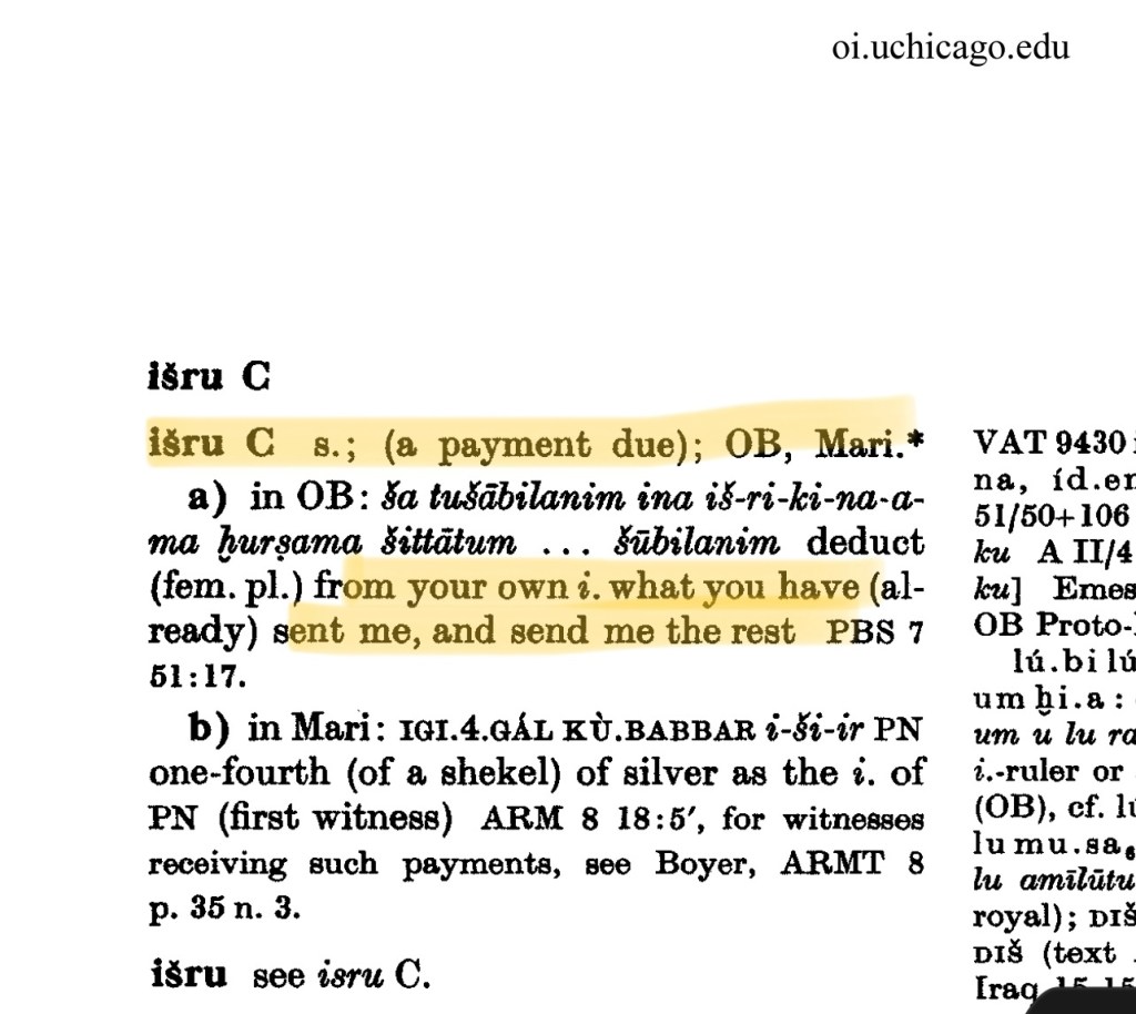 Remember the Sumerian word Δsiru meaning “one pressing for payment”? Well, this is the Old Babylonian rendition of that word, which is a newer word, but it fits the description. Jacob/IΕ‘ral was wrestling with the angel and did not want to let him go even after a distorted thigh. His objective was to keep pressing on until the angel blessed him and this could be parallel to “one pressing for payment”.