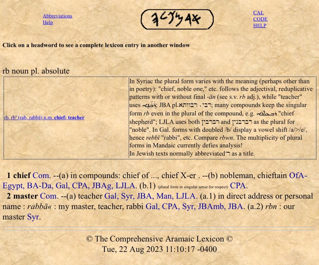 From these two sources of proof we can see that the word here is not ΧΧΧ ΧΧ but it is in fact π€π€π€π€π€π€ or Χ¨ΧΧ¨ΧΧΧβwhich is plural, meaning; chiefs, masters, teachers.