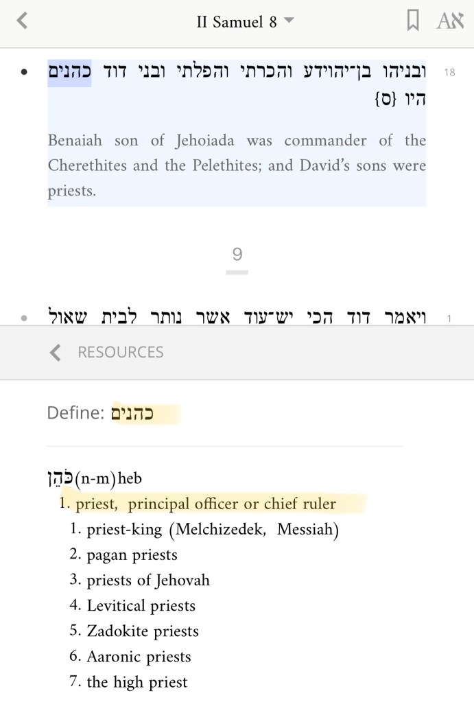 Luckily enough, the Aramaic Targum of Jonathan fixes this issue. Here are two examples of 2nd Samuel 8:18 in the Aramaic Targum of Jonathan: