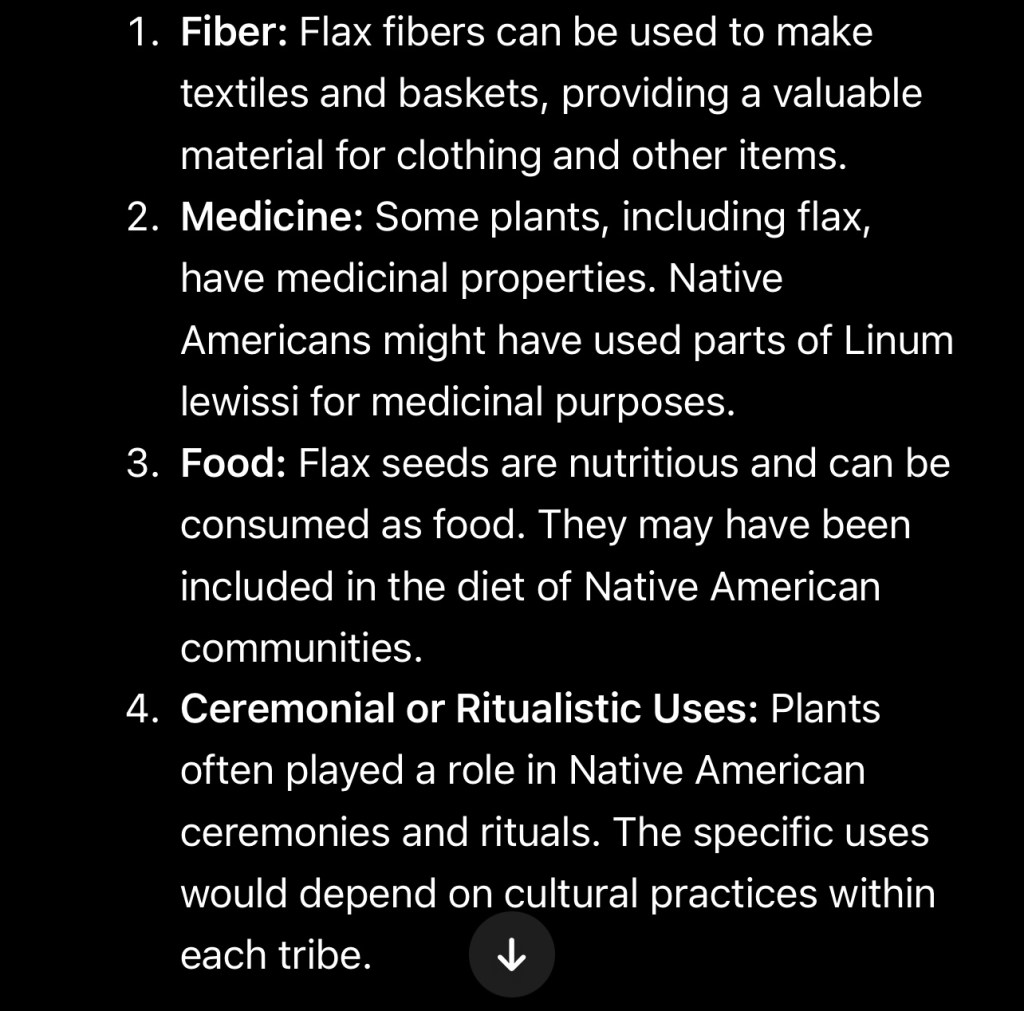 I asked ChatGPT 3.5 “Was Linum Lewissi used by the Native Americans”