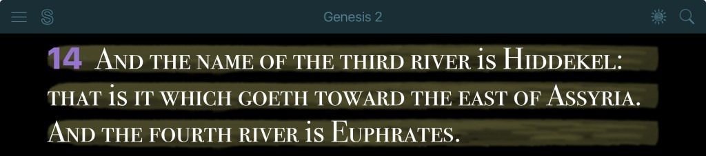 Genesis 2:14 And the name of the third river is Hiddekel: that is it which goeth toward the east of Assyria. And the fourth river is Euphrates.