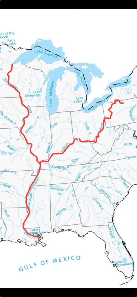 This is a map of Americaβs river system and we can see that it breaks off into 4 large rivers.
